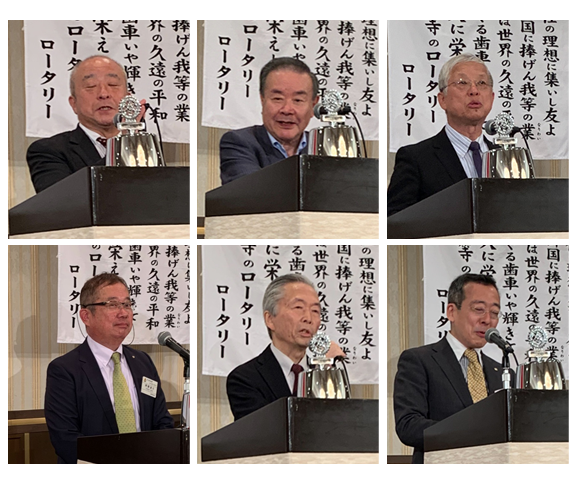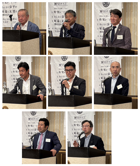 会長 山口琢也君、副会長 千 宗守君、副会長 伴戸 恒夫君、次年度会長 齊藤 達也君、会計 山田 英夫君、 幹事 浮田 徹君による「就任挨拶」でした。