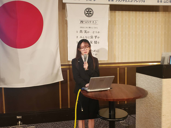 本日の例会スピーチは伴戸会員、齊藤会員による「クラブフォーラム 社会奉仕部門」と米山奨学生 髙 翊婷さんによる「米山奨学生 10月の近況報告」でした。