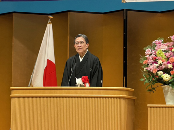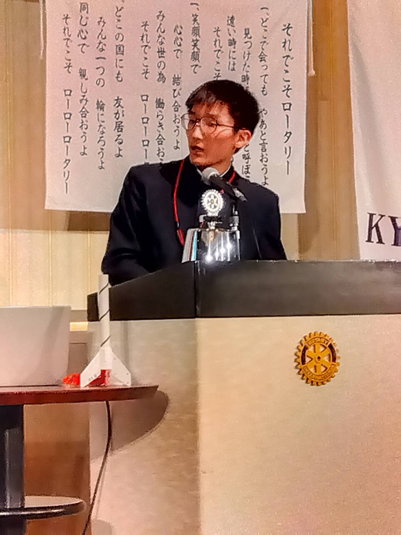 会員25名と米山奨学生が式典に参加し、伴戸副会長が代表して祝辞を述べ、成長の節目をお祝いしました。