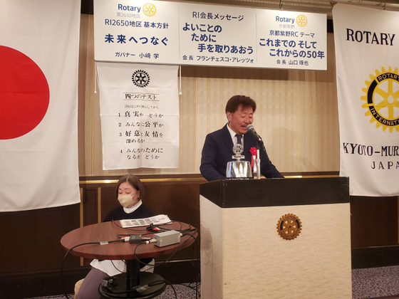 京都北ロータリークラブより、同クラブがホストを務める