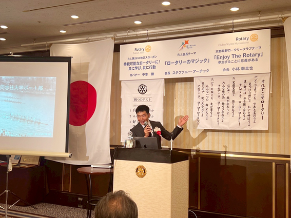 2025年6月9日(月)の例会スピーチは同志社大学大学院スポーツ健康科学研究科博士 同志社大学ボート部コーチ 中野 紘志様による「ボート競技と同志社大学ボート部」 でした。