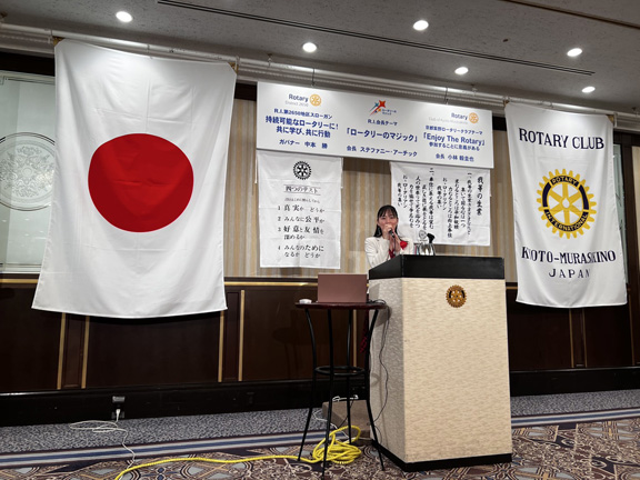 2025年5月19日(月)の例会スピーチは芸能エンターテイメントプロダクション 株式会社花実かざり 代表取締役 白石 明日香様による「芸能界の夢」でした。