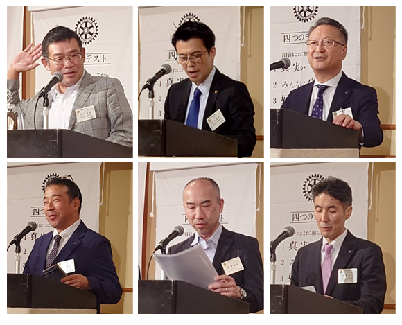 会長 山口琢也君、副会長 千 宗守君、副会長 伴戸 恒夫君、次年度会長 齊藤 達也君、会計 山田 英夫君、 幹事 浮田 徹君による「就任挨拶」でした。