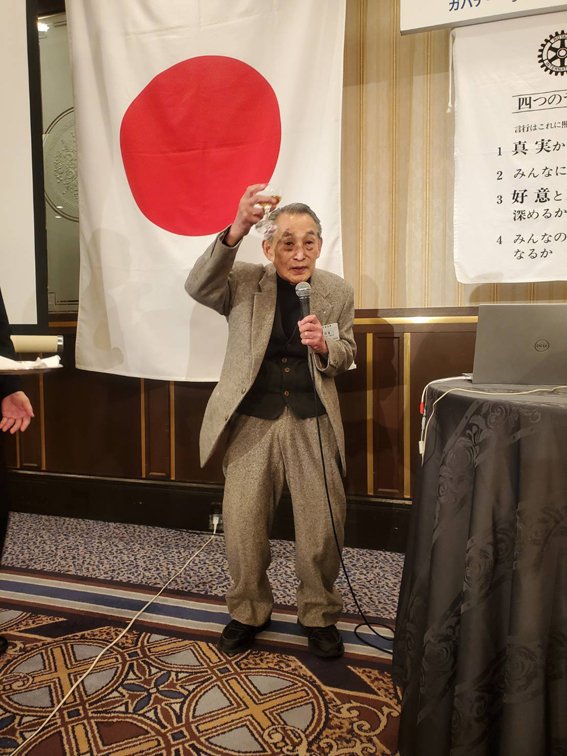 会員25名と米山奨学生が式典に参加し、伴戸副会長が代表して祝辞を述べ、成長の節目をお祝いしました。