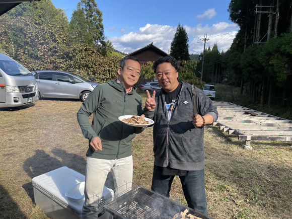 その後今井さんが狩猟された鹿などのジビエ肉をBBQで食しました。