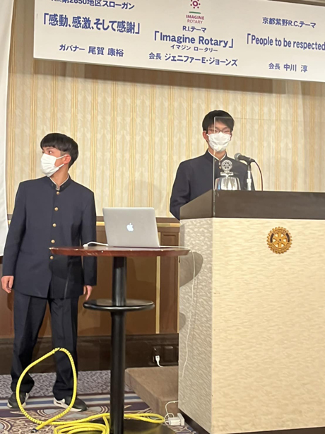 10月24日(月)の例会は第4回クラブフォーラム(青少年奉仕部門)を開催し、ヴィアトール学園洛星インターアクトクラブの方に来会して頂き、夏期研修の報告をしていただきました。