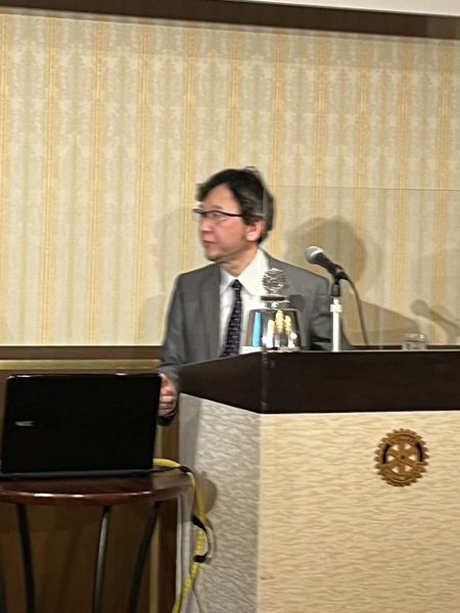 5月1日(月)の例会はエイコンヒビノ様をお招きし、「音楽と健康」についてお話していただきました。