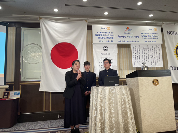 10月21日の例会スピーチはヴィアトール学園洛星IAC 顧問 井上 崇子様、夏期研修インターアクター室 雄介様、阿座上 瑛太様 による「インターアクト夏季研修の報告」でした。