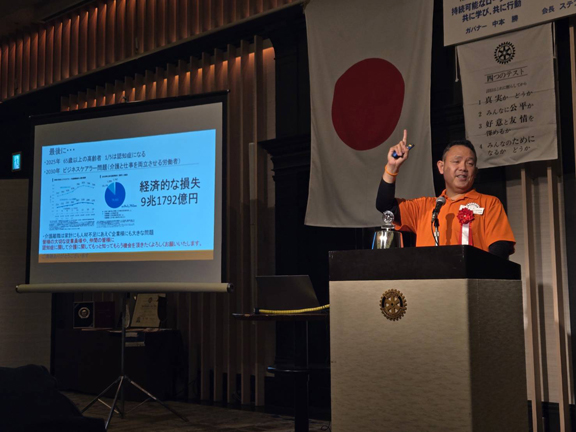 9月9日の例会スピーチは社会奉仕委員長 山口 博也君、副委員長 齊藤 達也君、委員 伴戸 恒夫君による「クラブ・フォーラム「社会奉仕部門」」でした。