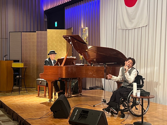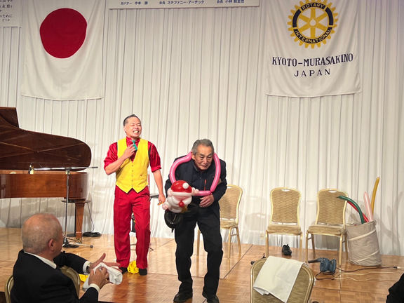 今年度はアトラクションとして、京大出身のマジシャンのヒロ赤星氏によりマジック&バルーンと京都亀岡観光PR大使としてご活躍のエイコン・ヒビノ様と関本泰輝様のお二人によるステージでした。