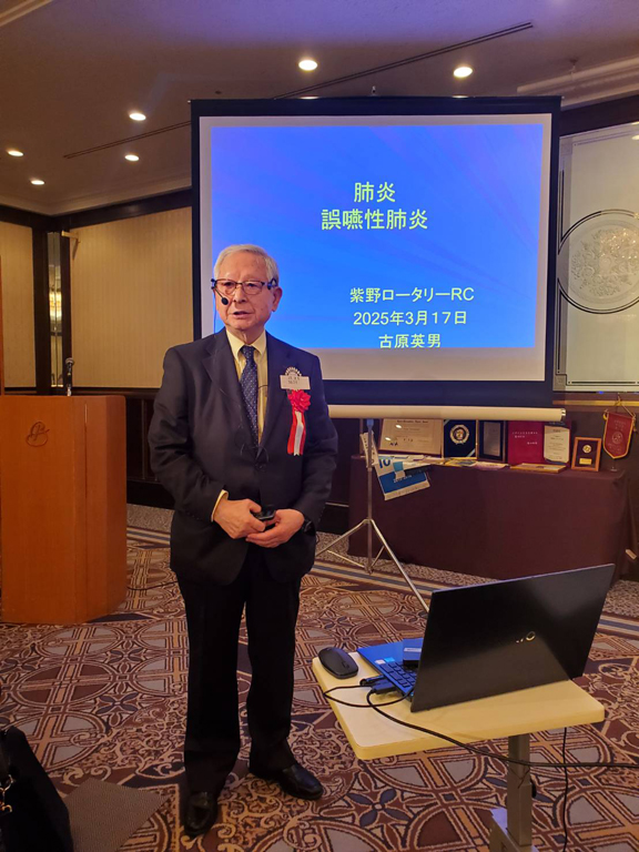 2025年3月17日(月)の例会スピーチは京都洛東RC会員 古原英男様 による「誤嚥性肺炎について」でした。