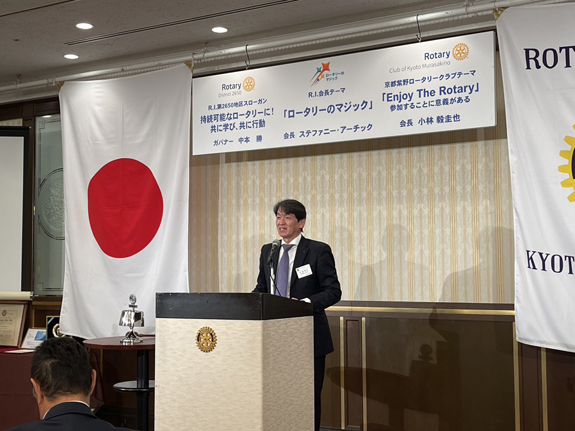 例会スピーチは 佛教大学歴史学部教授 京都中RC会員 八木透氏様による「京都特有の家族関係の背景を考える」でした。