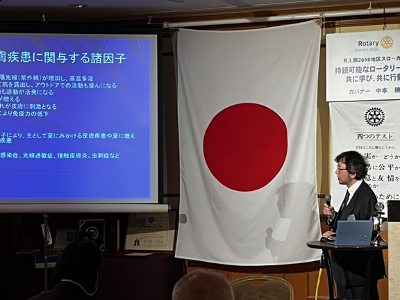 2025年4月7日(月)の例会スピーチは会員小西 啓介君による「会員スピーチ 夏に多い皮膚病」でした。