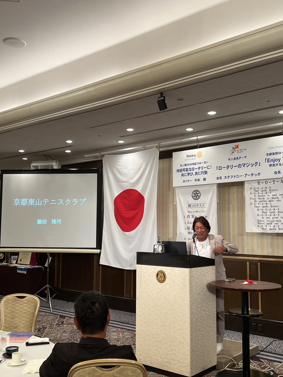 9月30日の例会スピーチは京都東山テニスクラブ 総支配人 藤田 隆司様 による「テニスと強い心の持ち方」でした。